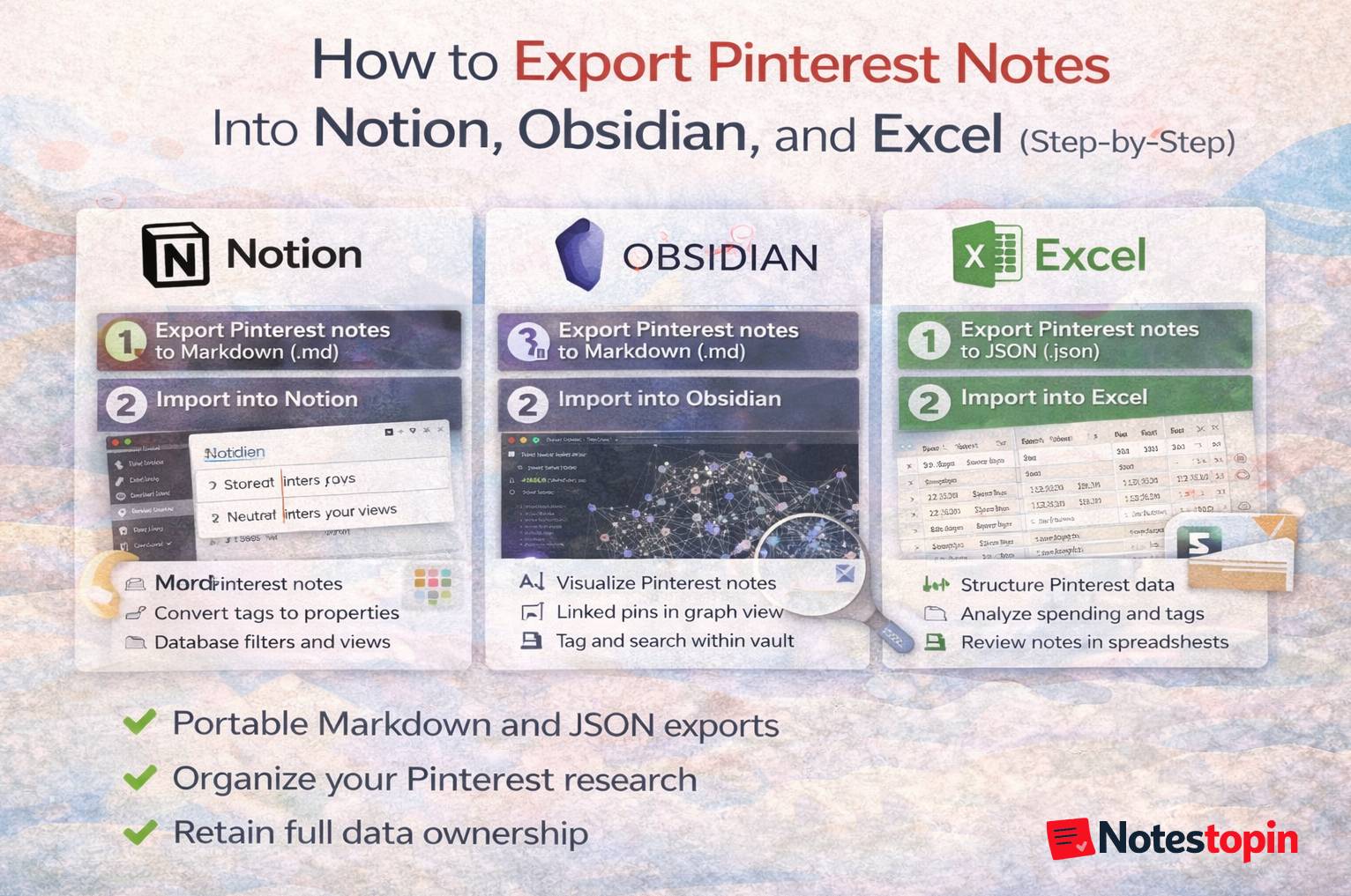 How to Export Your Pinterest Notes Into Notion/Obsidian/Excel (Step-by-Step)